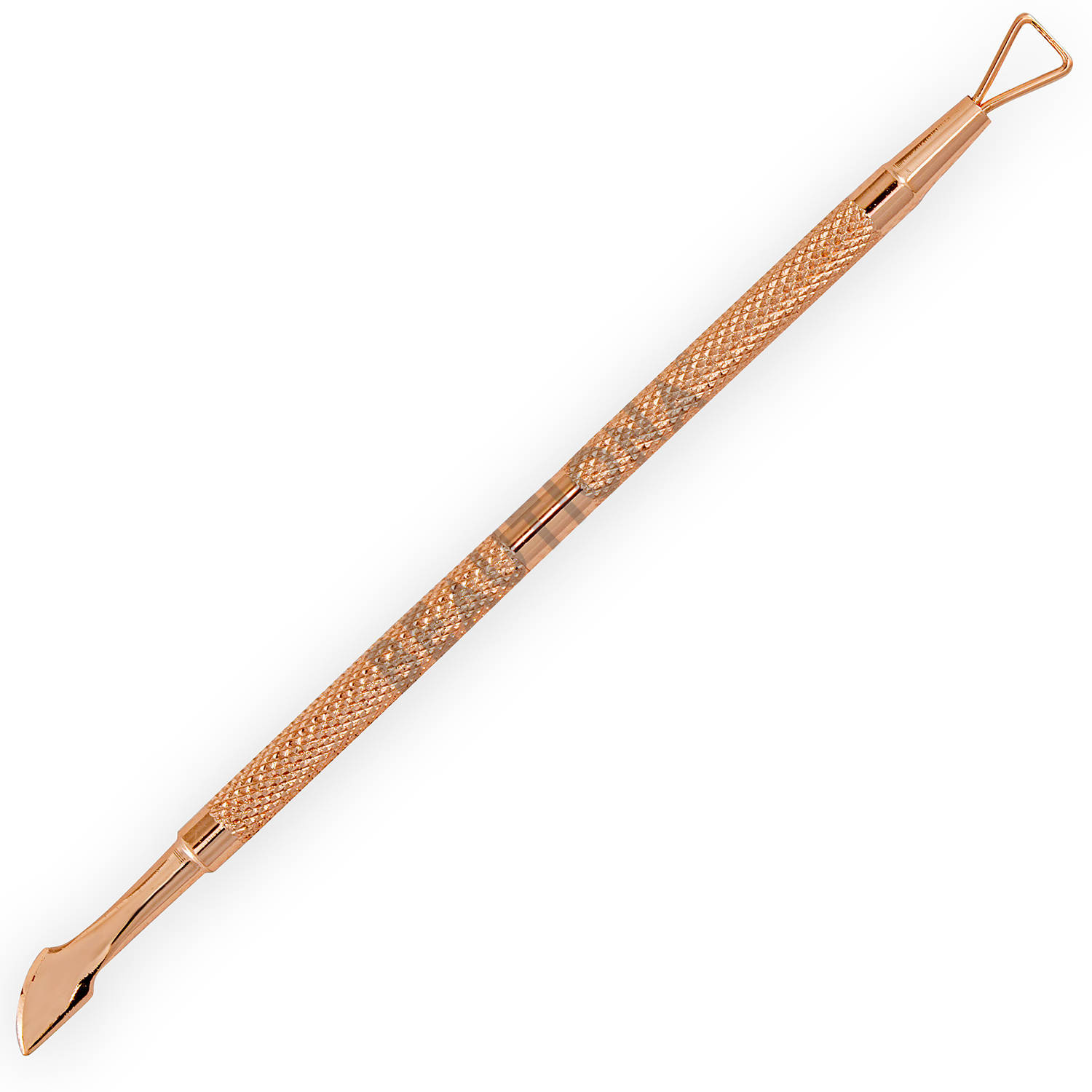 Jeden koniec radełka został zakończony łopatką, która służy do odsuwania skórek z paznokcia, ale też świetnie się sprawdzi do oczyszczania skórek.