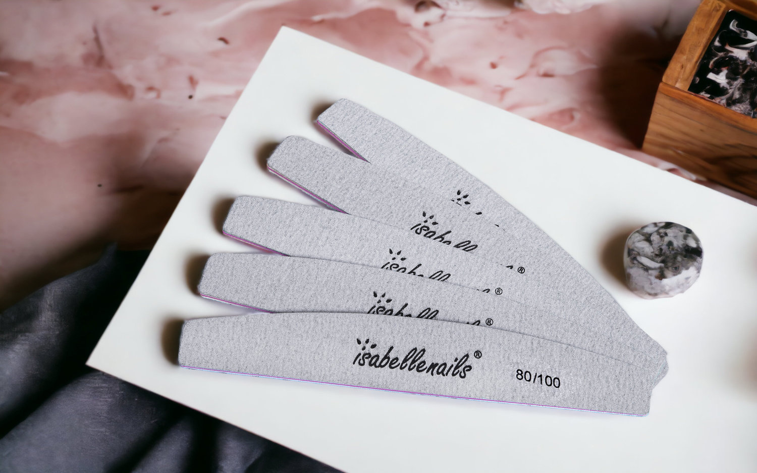 Profesjonalny pilnik do paznokci w kształcie półksiężyca o gradacji 80/100.