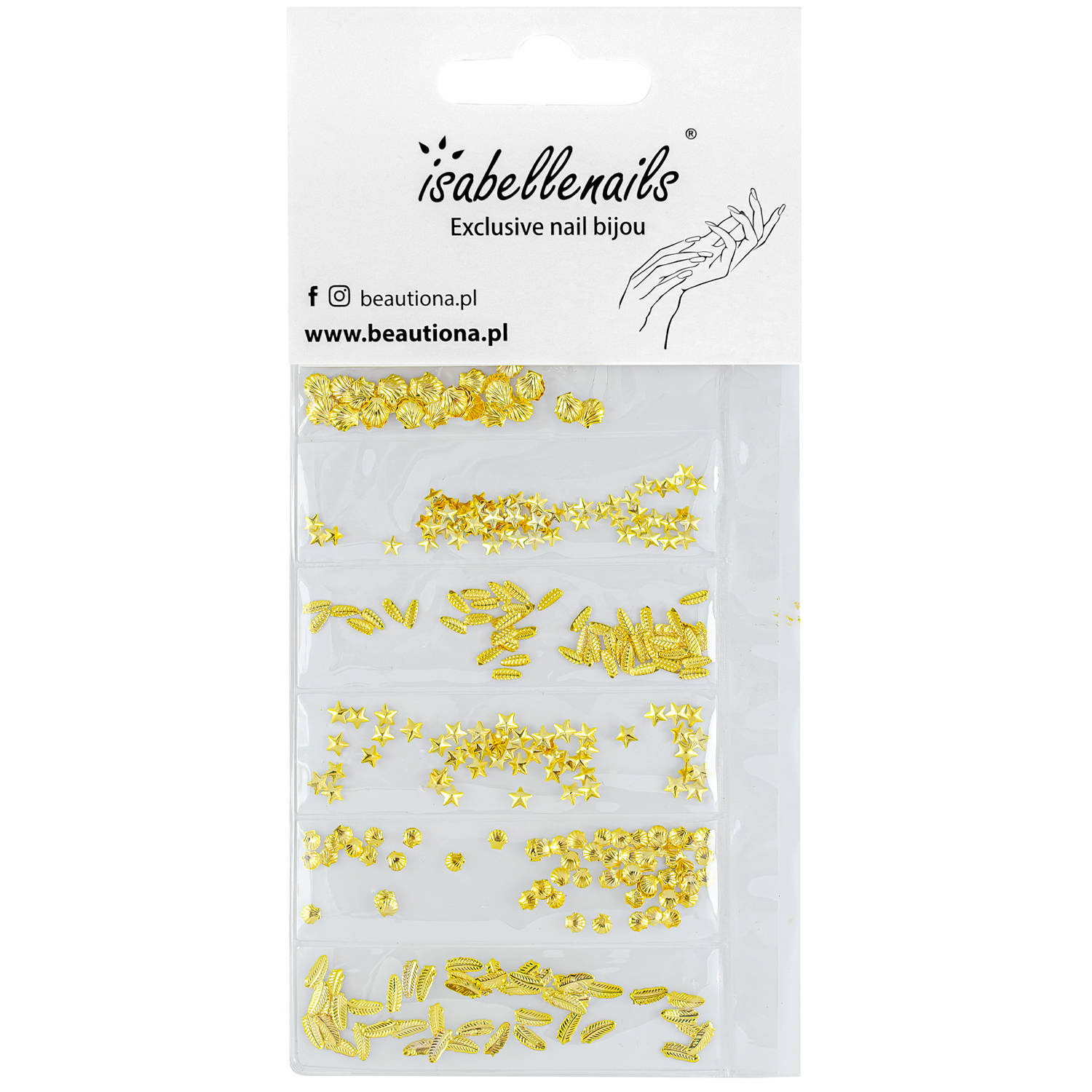 Mix ozdób do paznokci w kolorze złota nadadzą każdemu manicure klasy, szyku i elegancji.