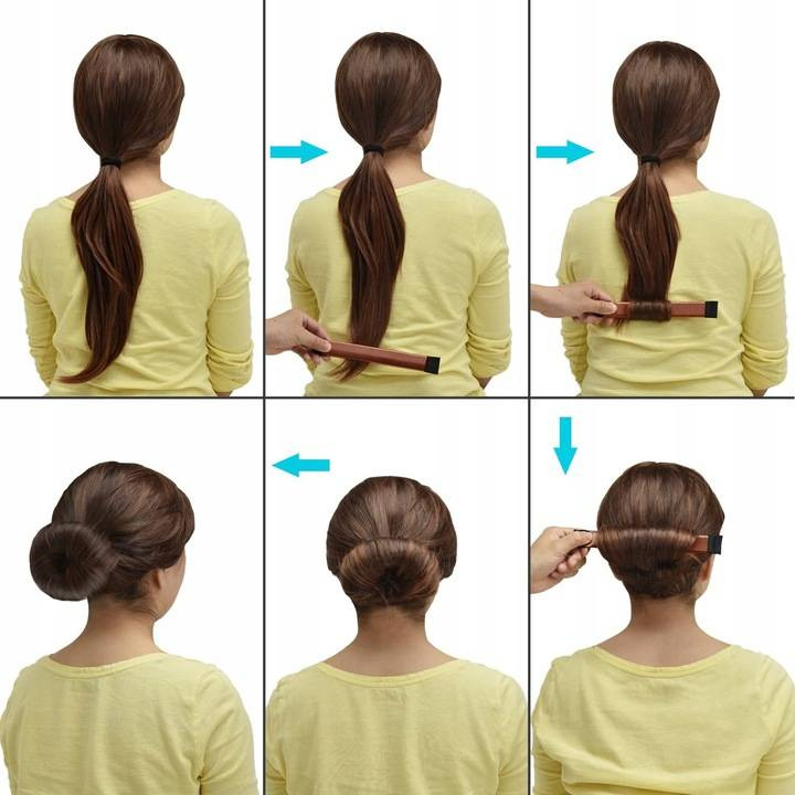 - Popraw włosy ułożone w kształcie koka, aby całkowicie zakryć opaskę.