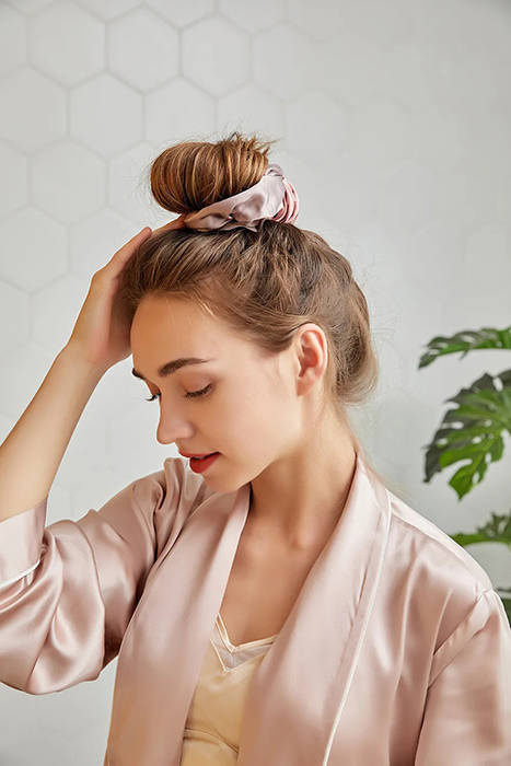 Elastyczna tkanina, z której wykonany jest scrunchie, sprawia, że nie uszkadza on włosów i jest bezpieczny w użyciu.