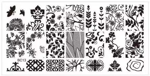 Blaszka posiada wiele wzorów dzięki którym można swobodnie eksperymentować z ostatecznym wyglądem paznokci.