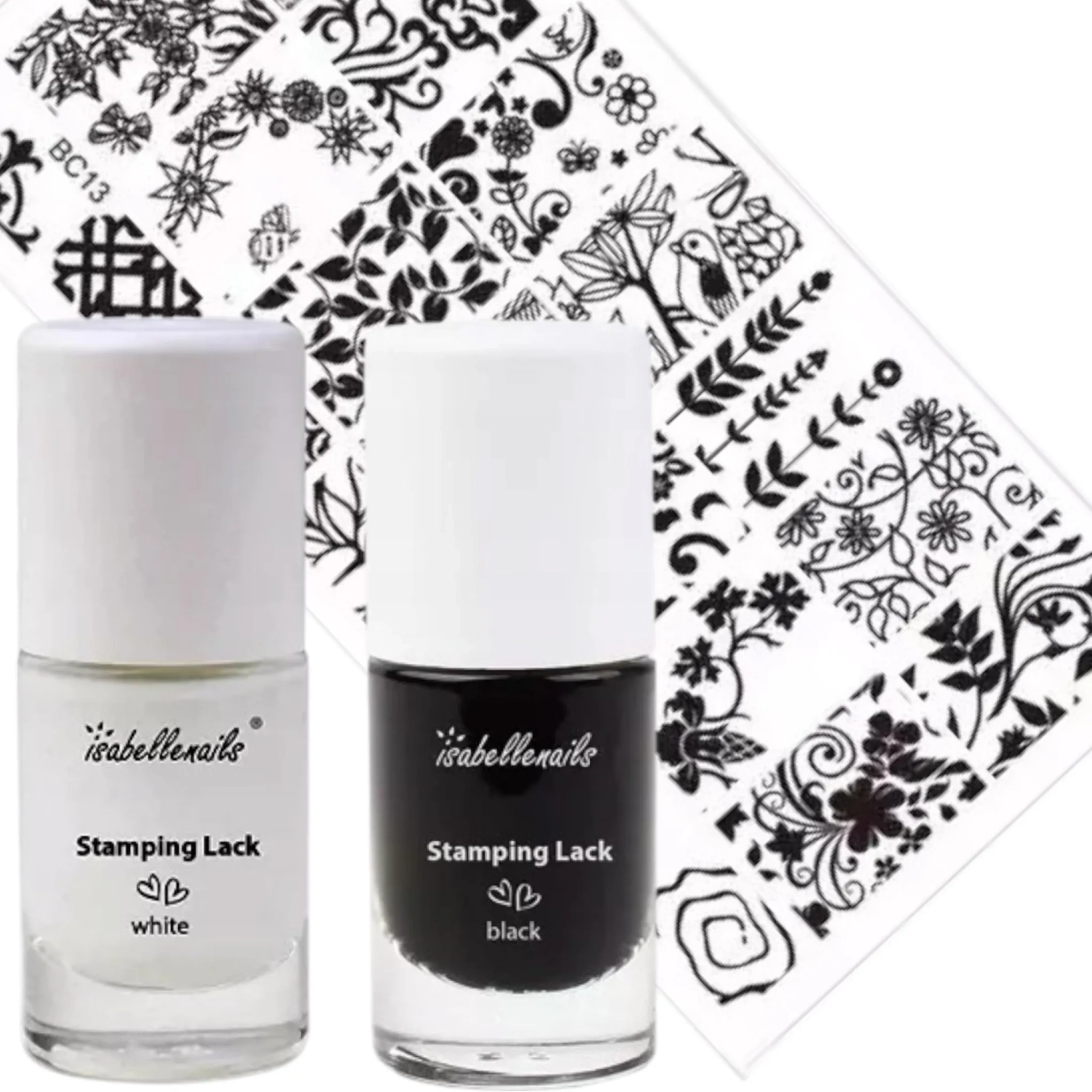 Zestaw do stemplowania paznokci 2 x lakier do stempli + blaszka