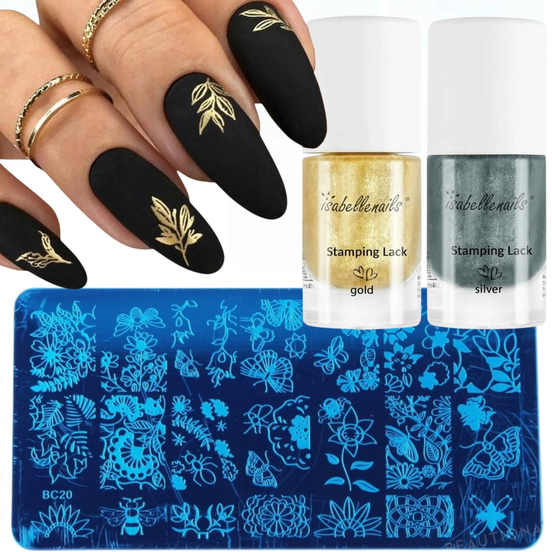 Zestaw do stemplowania paznokci lakiery silver, gold + blaszka