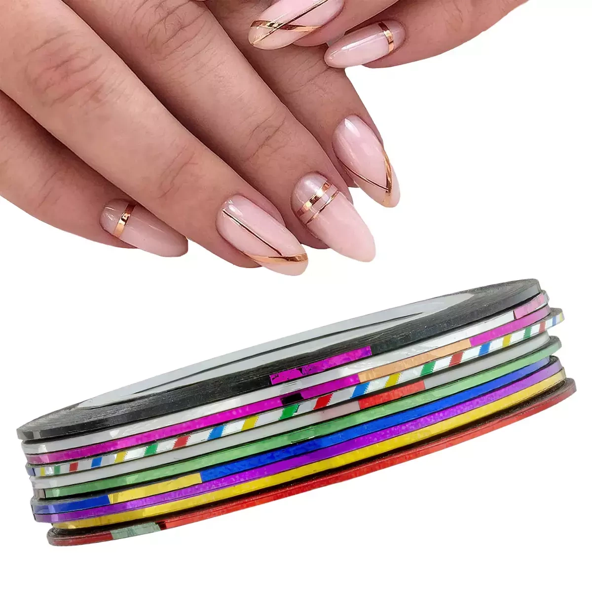 Samoprzylepne taśmy do zdobień paznokci pozwolą z łatwością stworzyć niepowtarzalne i różnorodne wzory i efekty na paznokciach.