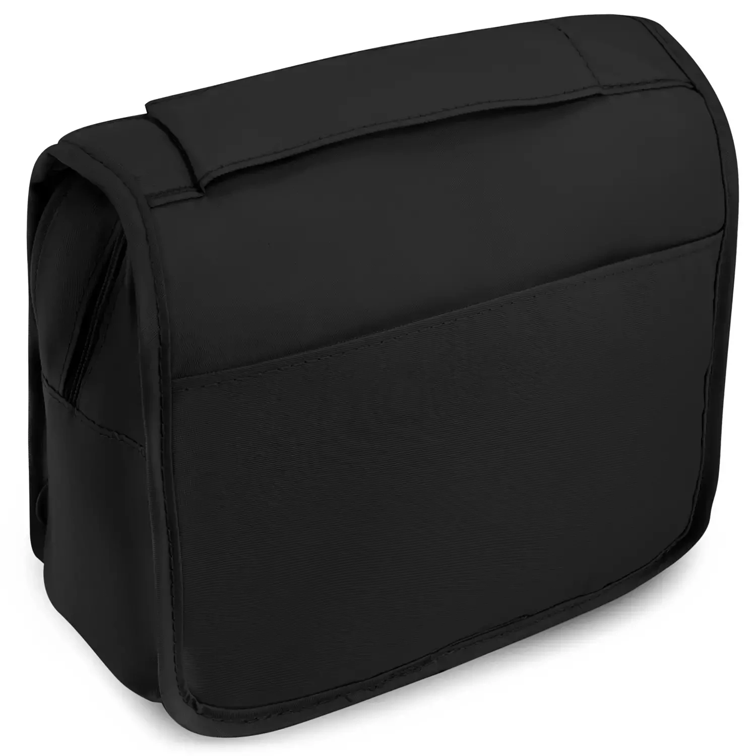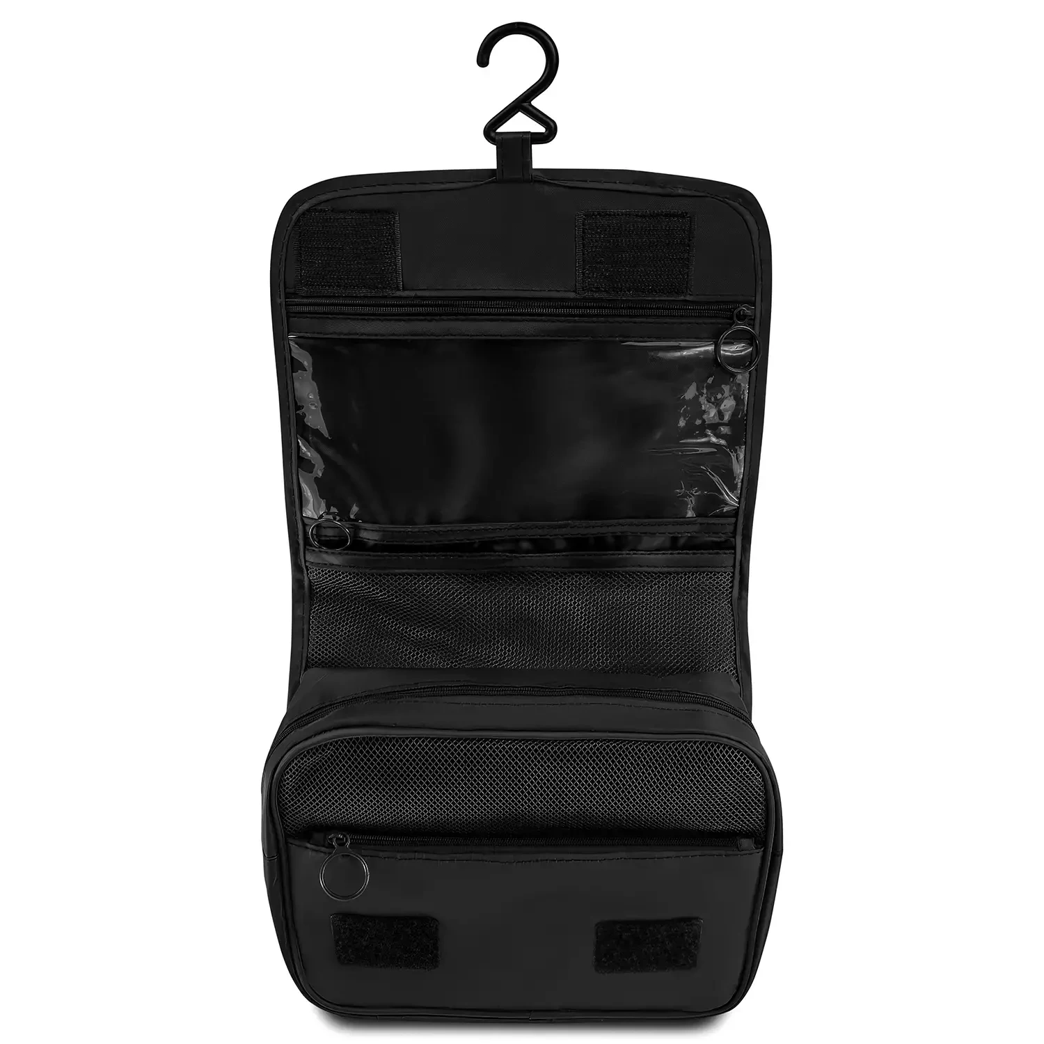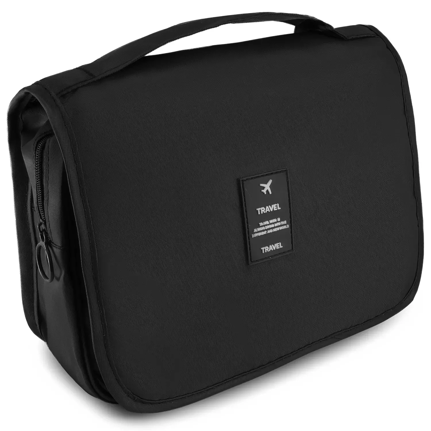 Haczyk umożliwi łatwe zawieszenie kosmetyczki na wieszaku w łazience lub na ścianie w hotelowym pokoju.