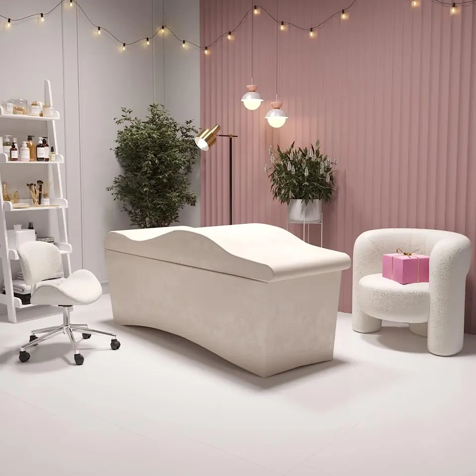 Jego ergonomiczny kształt został starannie zaprojektowany, aby dopasować się do naturalnych krzywizn ciała, co pomaga w zmniejszeniu napięcia mięśni i poprawie krążenia krwi podczas długich sesji zabiegowych. Dzięki swojej anatomicznej konstrukcji i wysokiej jakości poszewce, materac zapewnia nie tylko wyjątkowy komfort dla klientów, ale także pomaga w utrzymaniu wysokich standardów higieny i profesjonalizmu w salonie kosmetycznym.